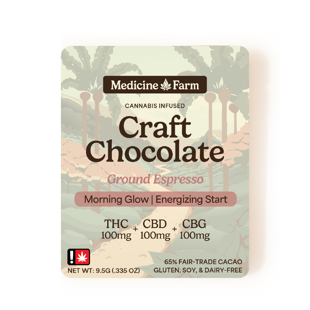 MF 1:1:1 THC:CBD:CBG ESPRESSO MINI CRAFT CHOCO BARGround Espresso expMF 1:1:1 THC:CBD:CBG ESPRESSO MINI CRAFT CHOCO BAR Strain: No Strain Brand: Medicine Farms Type: Edible THC: 100.00% CBD: 110.00%